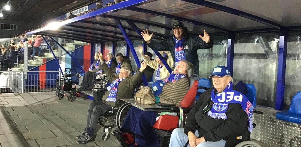 Vandaar ook dat zij opnieuw waren uitgenodigd, nu voor het bijwonen van de wedstrijd van vrijdag 2 november. Volgens bewoner Lourens Hoenders was het reuzegezellig: ‘Goede ontvangst bij PEC ook! Met ook eten en drinken! Wel verlies! 1-3 ,maar dat mocht de pret niet drukken!’