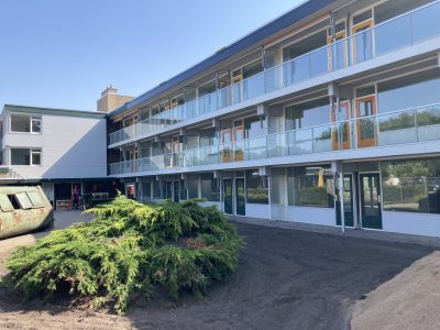 Niet alleen de binnenkant is aangepakt, ook de gevel is flink opgeknapt. Zo zijn de balkons verdiept naar 1,5 meter, zodat bewoners prettig buiten kunnen zitten. De balkonhekken zijn vervangen door hardglazen panelen, zodat mensen van het uitzicht en de sociale omgeving kunnen blijven genieten.